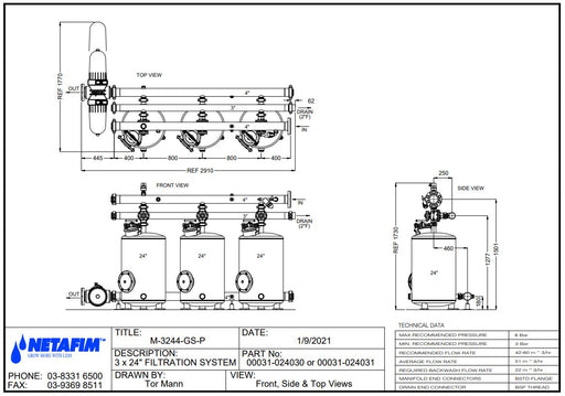 Netafim SandStorm 3 Tank Manifold Fully Automatic Gravel Media Filter System with Media – DC Controlled The Netafim SandStorm 3 Tank Manifold Fully...