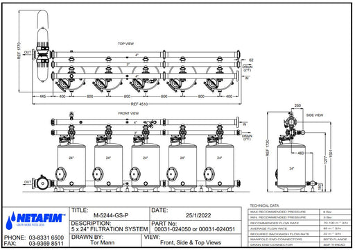 Netafim SandStorm 5 Tank Manifold Fully Automatic Gravel Media Filter System with Media – AC Controlled The Netafim SandStorm 5 Tank Manifold Fully...