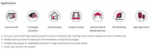 • Caravan & RV: Run all your appliances, including air conditioning, for luxurious off-grid living
