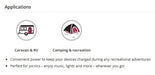 • Caravan & RV: Keep phones, lights, and fridges powered during your travels