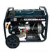 Mobility is enhanced by a full transport kit with fold-out handles and large wheels. Starting options include recoil, electric push-button, wireless remote, and 2-wire remote start, allowing seamless integration with automated systems. A digital V/F/T display shows voltage, frequency, and runtime, while IP66-rated outlets, USB ports, and multiple safety alarms ensure safe and versatile operation.