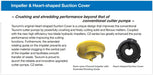 In addition to that, the extended rotating guide equipped on impeller prevents the retention of solid waste at the central part of the impeller, thereby providing a smooth pumping operation.
