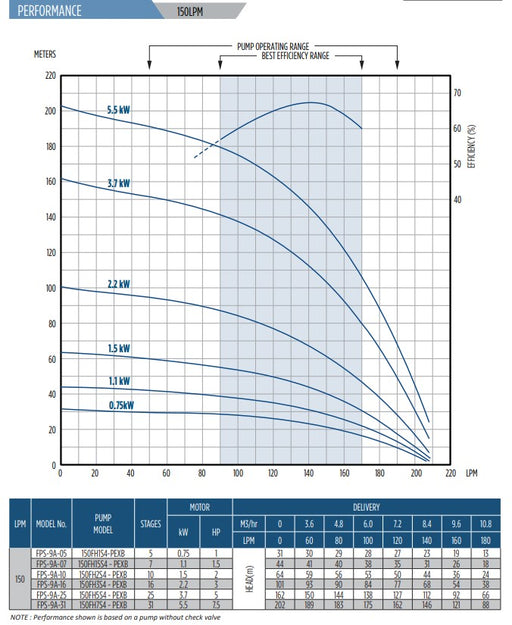 Sta-Rite HS 150 Series Stainless Steel 4" Submersible Bore Pump Kit Complete with Rewindable Motor & Splicing Kit (Max 150LPM) Note: All varian...