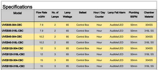 Aquacorp UV EB Series UVEB35 Multi-Lamp UV Water Steriliser Systems for Commercial & Light Industrial Applications (7.9m³/hr) DOWNLOAD PROD...