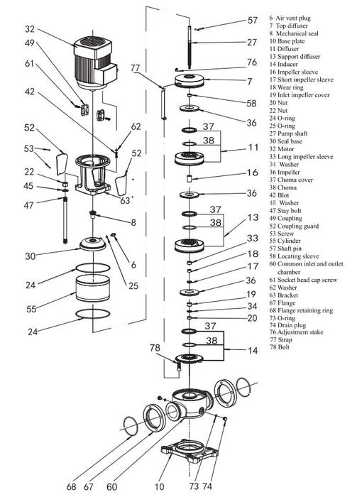 - IP55-rated, fan-cooled motor with water-lubricated bearings