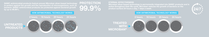 - Made from PET with integrated silver-ion SANIC antimicrobial protection